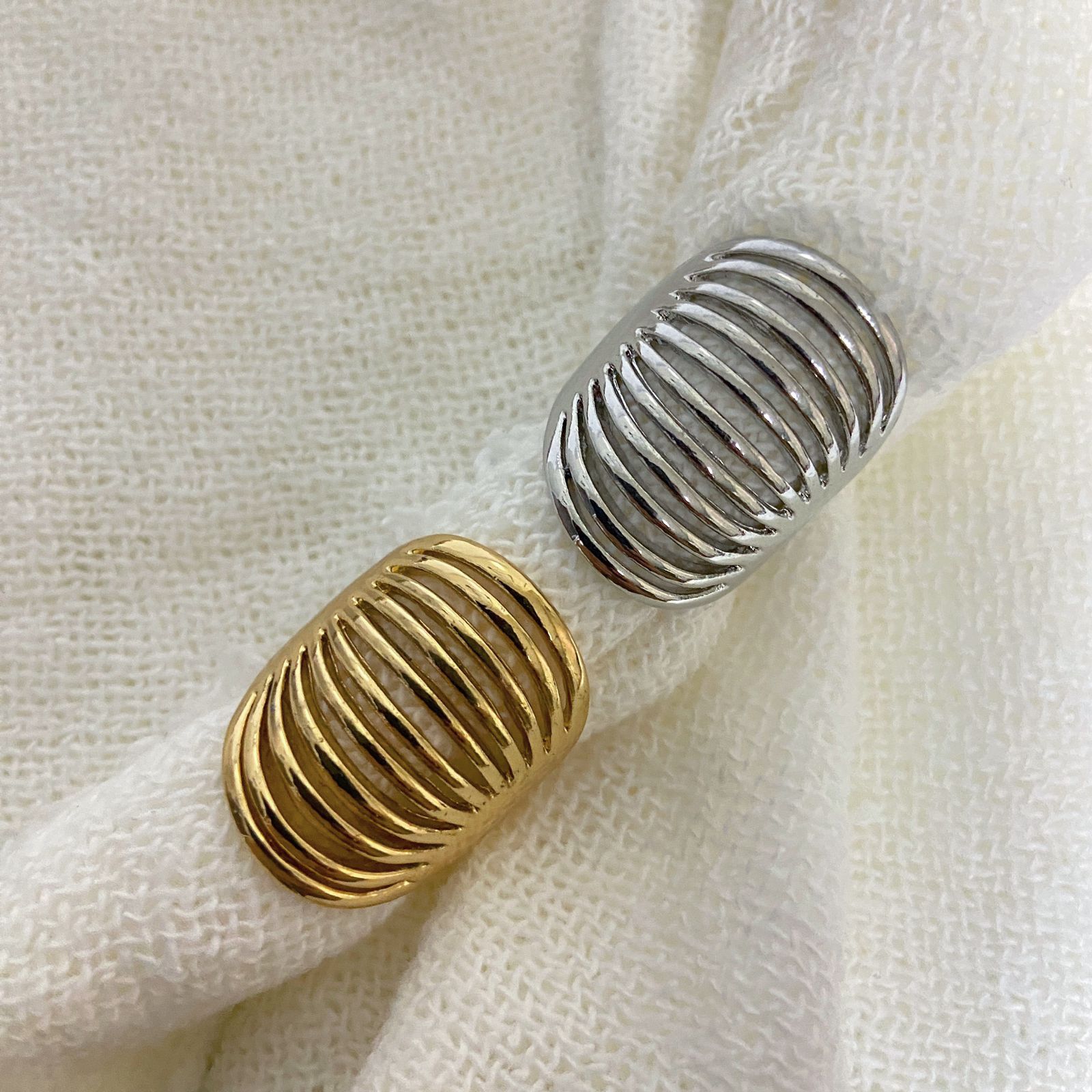 O Anel Vazado Linhas é uma peça de destaque que combina elegância e modernidade de forma única. Com um design minimalista e contemporâneo, este anel apresenta um padrão de linhas entrelaçadas em um elegante formato vazado.