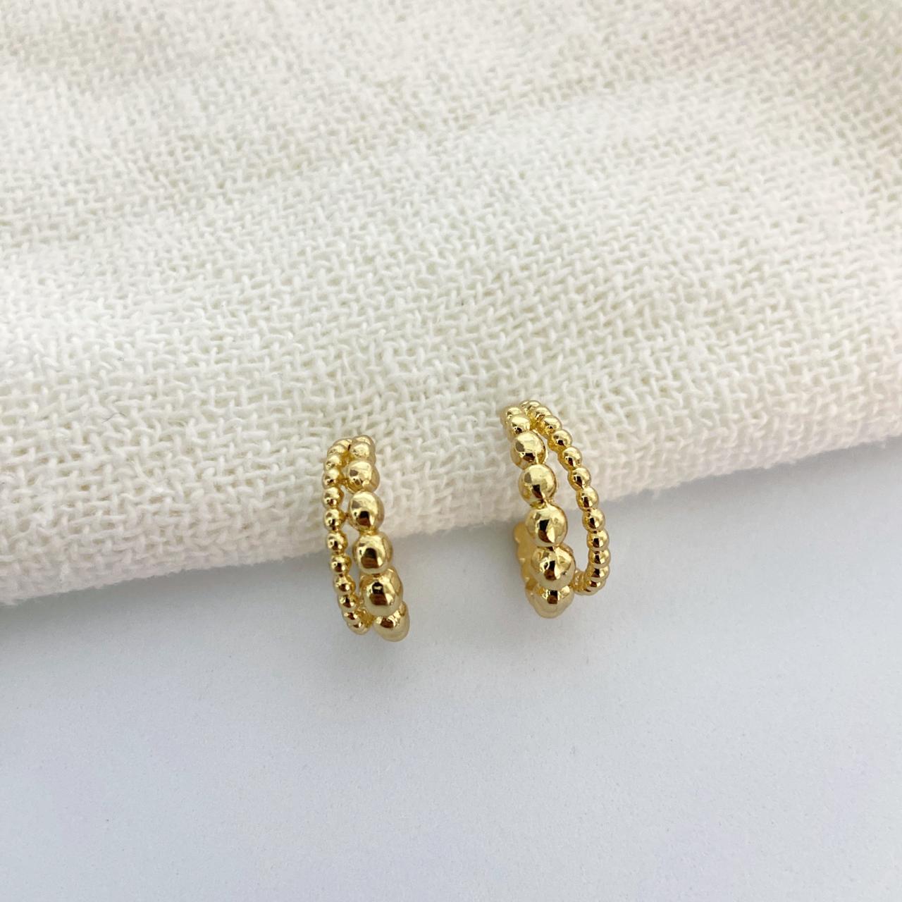 As argolinhas bolinhas duplas douradas são uma adição encantadora para sua coleção de joias. Com um design delicado e versátil, estas argolinhas apresentam dois aros interligados, adornados com pequenas bolinhas douradas que adicionam um toque de sofisticação e charme ao seu visual.