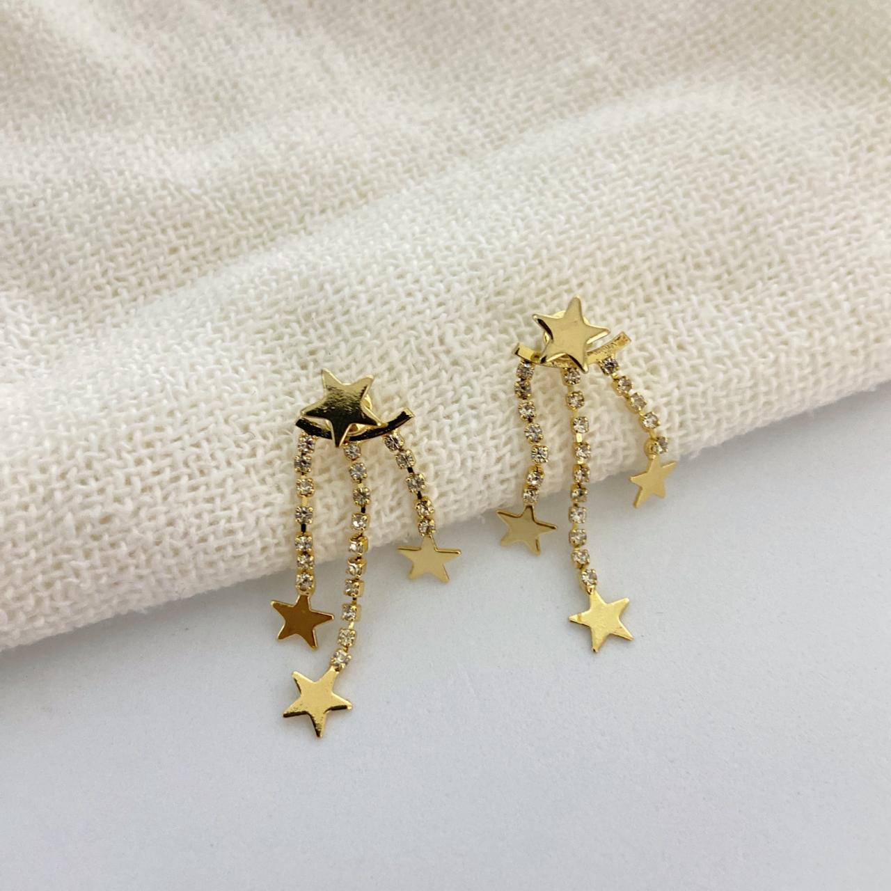 Os brincos Festa Estrela são uma escolha deslumbrante para realçar o seu visual em ocasiões especiais. Com um design elegante e sofisticado, esses brincos apresentam detalhes em forma de estrela que adicionam um toque de brilho e glamour ao seu estilo.