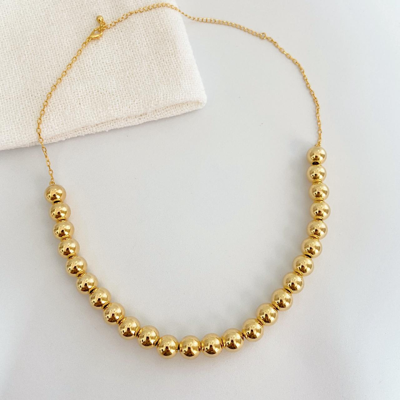 O Colar Bolinhas Douradas é uma peça encantadora que adiciona um toque de elegância e estilo ao seu visual. Com um design delicado e moderno, este colar apresenta pequenas bolinhas intercaladas ao longo da corrente, criando um efeito sutil e sofisticado.