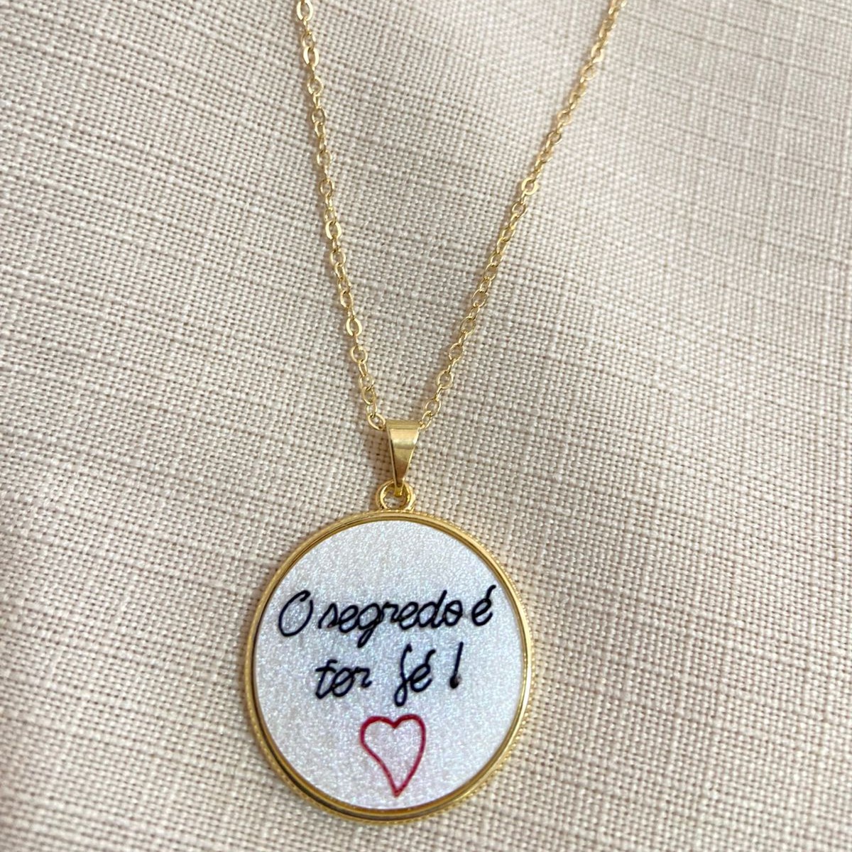O Medalhão "O Segredo é Ter Fé" é uma peça inspiradora que transmite uma mensagem de esperança e confiança. Com um design elegante e significativo, este medalhão apresenta a frase "O Segredo é Ter Fé" gravada de forma delicada e marcante.