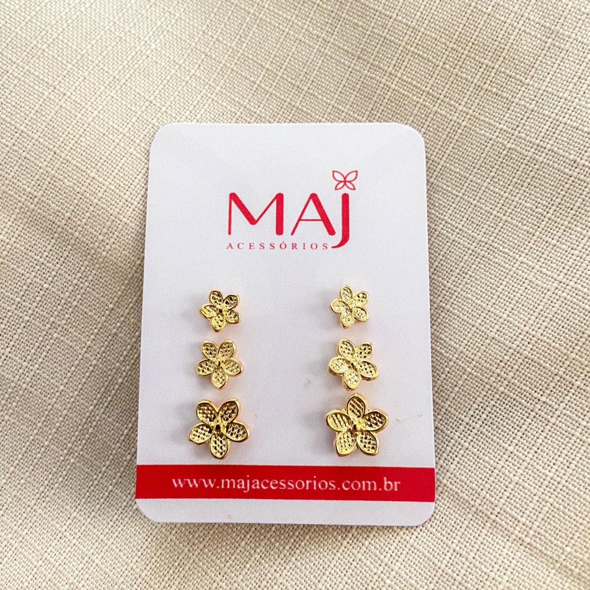 O Trio Florzinhas é uma escolha encantadora para adicionar um toque de delicadeza e estilo ao seu visual. Composto por três brincos de tamanhos diferentes, cada um apresenta um gracioso design de flor, transmitindo uma sensação de leveza e elegância.